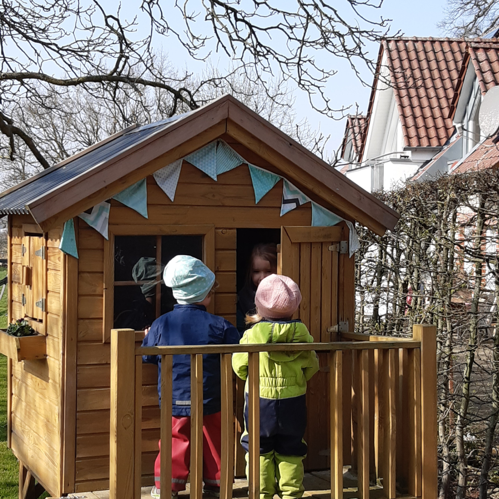 Die Räume sind kindgerecht ausgestattet und bieten Platz für vielfältige Entdeckungen. Unser Garten ist groß und bietet viel Spiel und Spaß für die Tageskinder. Dort machen die Kinder auch Bekanntschaft mit unseren Katzen und Hühnern.